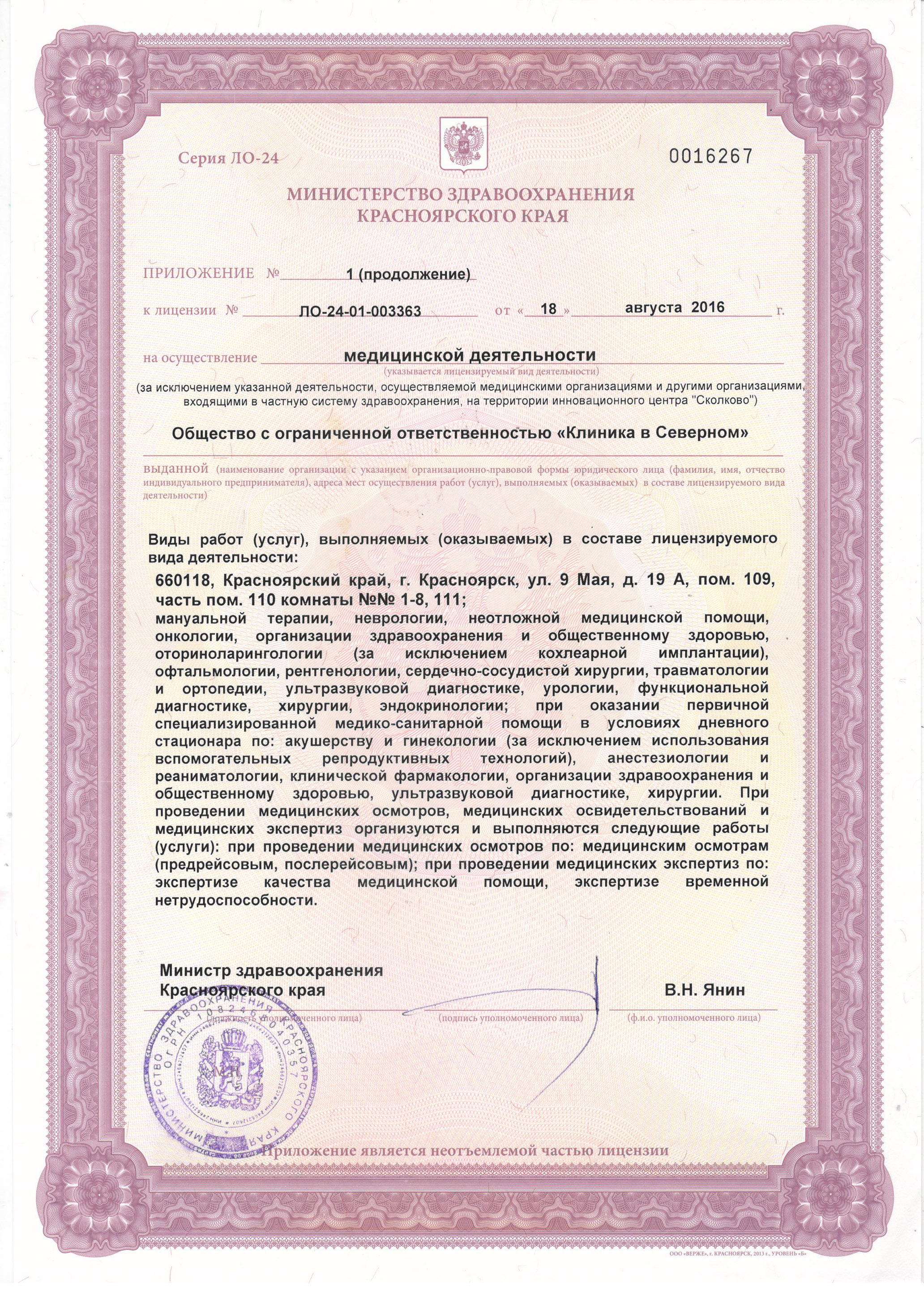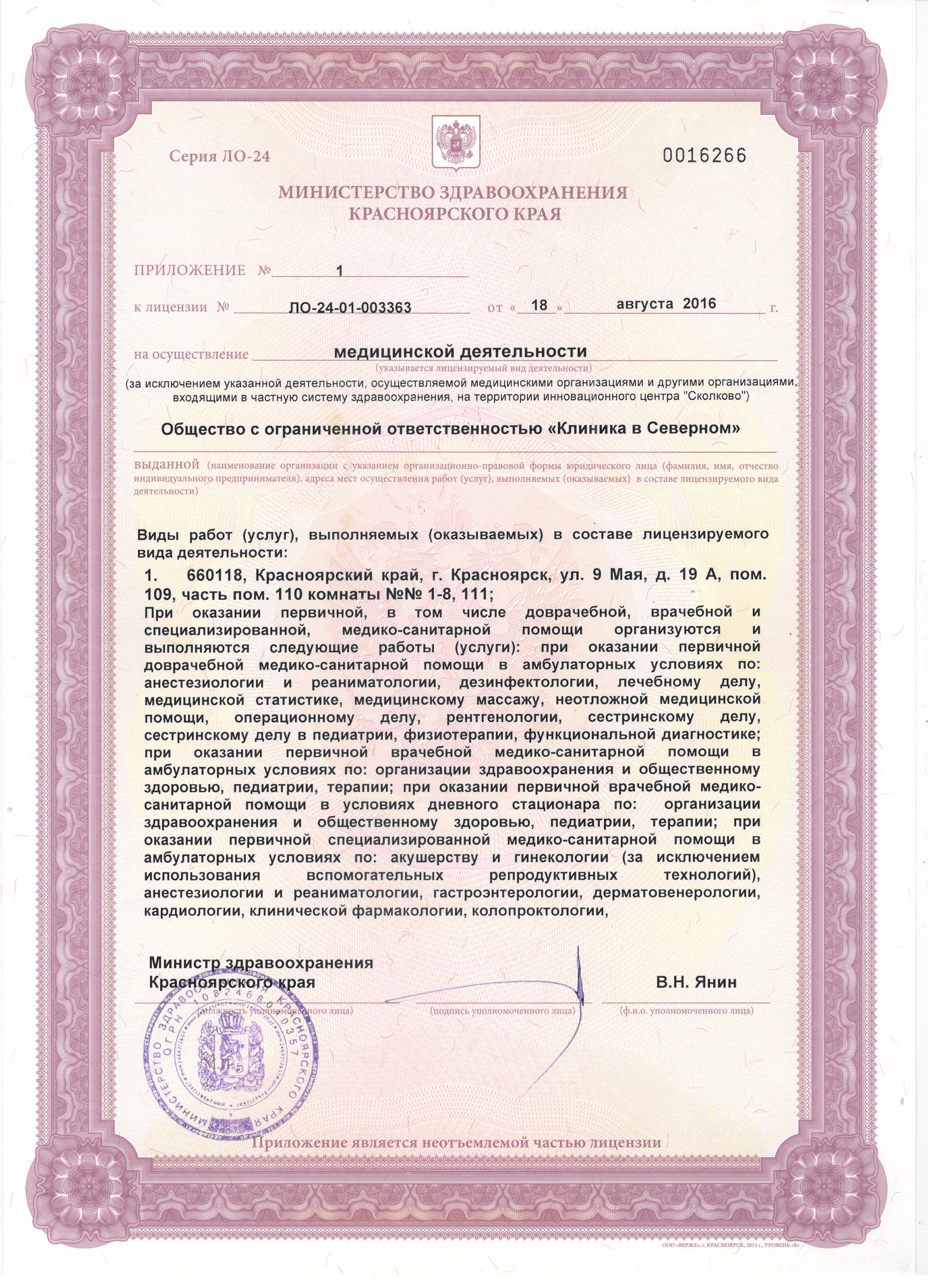 «Клиника в Северном» на ул. 9 Мая г. Красноярска уже более 17 лет предоставляет жителям Красноярска качественные медицинские услуги. Наши врачи — это команда профессионалов, постоянно повышающих свою квалификацию, осваивая новые технологии и совершенствуя навыки. Мы знаем, как важно для вас получить помощь, не нарушая привычного распорядка жизни. Поэтому мы работаем для наших пациентов 7 дней в неделю по удобному графику, включая выходные дни. В наших клиниках ведут прием только проверенные специалисты, постоянно повышающие свою квалификацию, осваивая новые технологии и совершенствуя навыки — их опыт позволяет найти решения для самых непростых задач.
