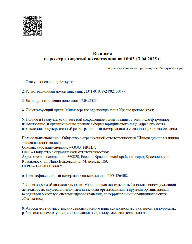 «Replanta» на ул. Ладо Кецховели – инновационная клиника трансплантации волос в Красноярске, которая работает по методу FUE (Follicular Unit Extraction). Мы помогаем пациентам обрести мечту и вернуть волосы, в том числе после ожогов, шрамов и химиотерапии. «Replanta» – проект от многопрофильного центра «Клиника в Северном», который в 2023 году был первым в Красноярске, кто запустил направление по трансплантации волос. За 2 года команда клиники провела более 200 операций и стала экспертом в области трансплантации волос. Наша клиника предоставляет услуги по восстановлению красоты и здоровья волос. Мы предлагаем широкий спектр процедур, включая консультации по уходу за волосами, современные методы пересадки волос, инъекционные процедуры для стимуляции роста и укрепления корней, а также диагностику состояния волос и кожи головы с целью индивидуального подбора наиболее эффективных методов лечения. Наша команда — это не только профессионалы своего дела, но и заботливые наставники, готовые помочь Вам достичь желаемых результатов. Мы стремимся к лучшему для каждого нашего пациента, предоставляя индивидуальный подход и качественное медицинское обслуживание.