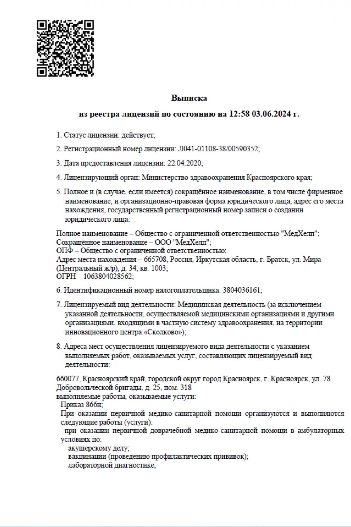 Клиника «Мед Хелп» на ул. 78-й Добровольческой Бригады г. Красноярска — многопрофильный медицинский центр, где вы можете получить широкий спектр медицинских услуг для всей семьи. В нашем центре работают опытные специалисты различных направлений: терапевты, педиатры, гинекологи, хирурги, офтальмологи и другие. Клиника оснащена современным оборудованием, что позволяет проводить точную диагностику и эффективное лечение на высоком уровне. Наша клиника является многопрофильной и оснащена всем необходимым оборудованием для проведения диагностики и лечения различных заболеваний. У нас работают опытные и высококвалифицированные специалисты, которые всегда готовы помочь вам и ответить на все интересующие вопросы. Мы стремимся создать для вас максимально комфортные условия пребывания в клинике, обеспечить индивидуальный подход и внимательное отношение к каждому пациенту. «Мед Хелп» — это место, где ваше здоровье и благополучие всегда в приоритете, а забота о пациентах — основа нашей работы.
